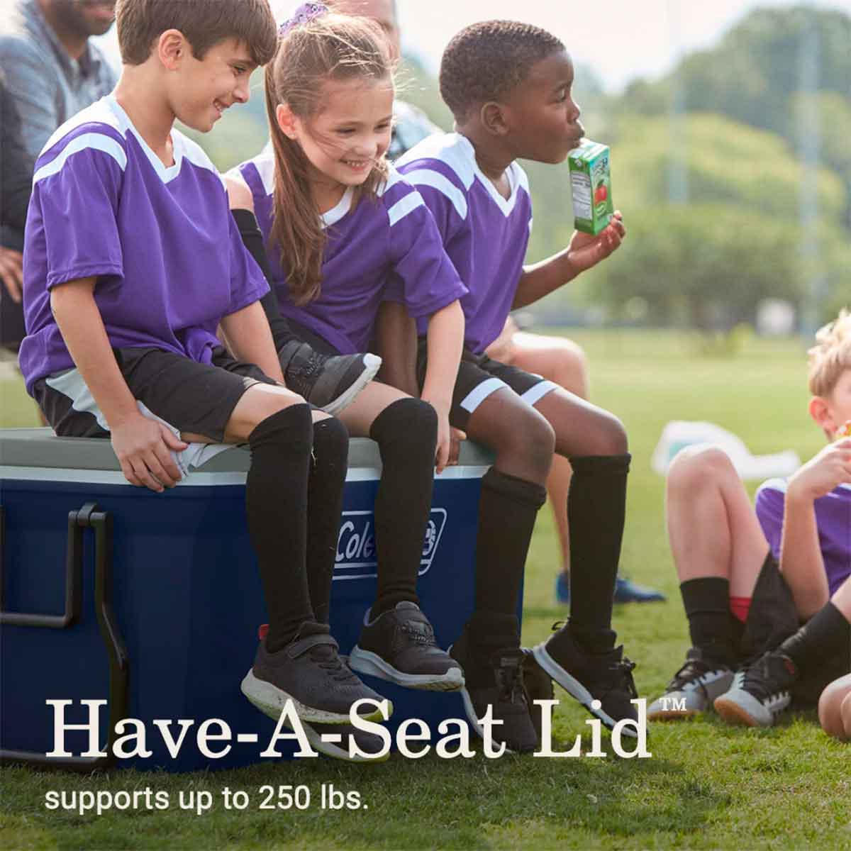 Las bebidas frías y las comidas compartidas alimentan los mejores momentos al aire libre y el refrigerador con ruedas Coleman® 316 Series™ es la opción correcta para ello. Este cooler grande de 100 cuartos tiene capacidad para hasta 80 latas y 50 libras de hielo, suficiente para refrescar a toda la familia. ¿Busca una opción de retención de hielo para varios días? El aislamiento TempLock FX™ en la tapa y en el cuerpo realmente retiene el frío. Las ruedas resistentes y el asa de remolque permiten un largo recorrido con facilidad. Además, esta hielera está hecha con un 15 % menos de plástico que las hieleras Coleman comparables. Cuando necesite un descanso, la tapa Have-A-Seat Lid™ soporta hasta 250 libras y tiene 4 prácticos portavasos. ¿Quiere más? El tapón de drenaje atado evita las fugas, el revestimiento resiste las manchas y nuestra tapa EZ-Clean simplifica la limpieza. Desde el campamento hasta el lugar de trabajo, desde la playa hasta la fogata, desde el campo de fútbol hasta el estadio, Coleman lo ayuda a mantenerse fresco.
