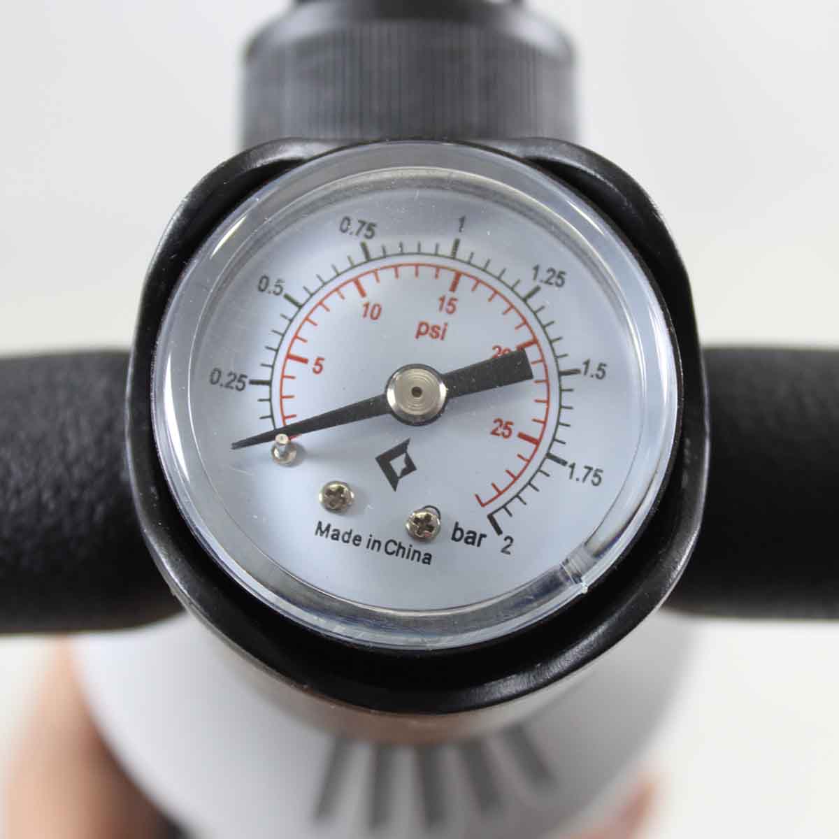 Bomba manual con manómetro y 4 boquillas intercambiables adecuadas para los productos inflables más populares. Puedes tanto inflar como desinflar el aire.