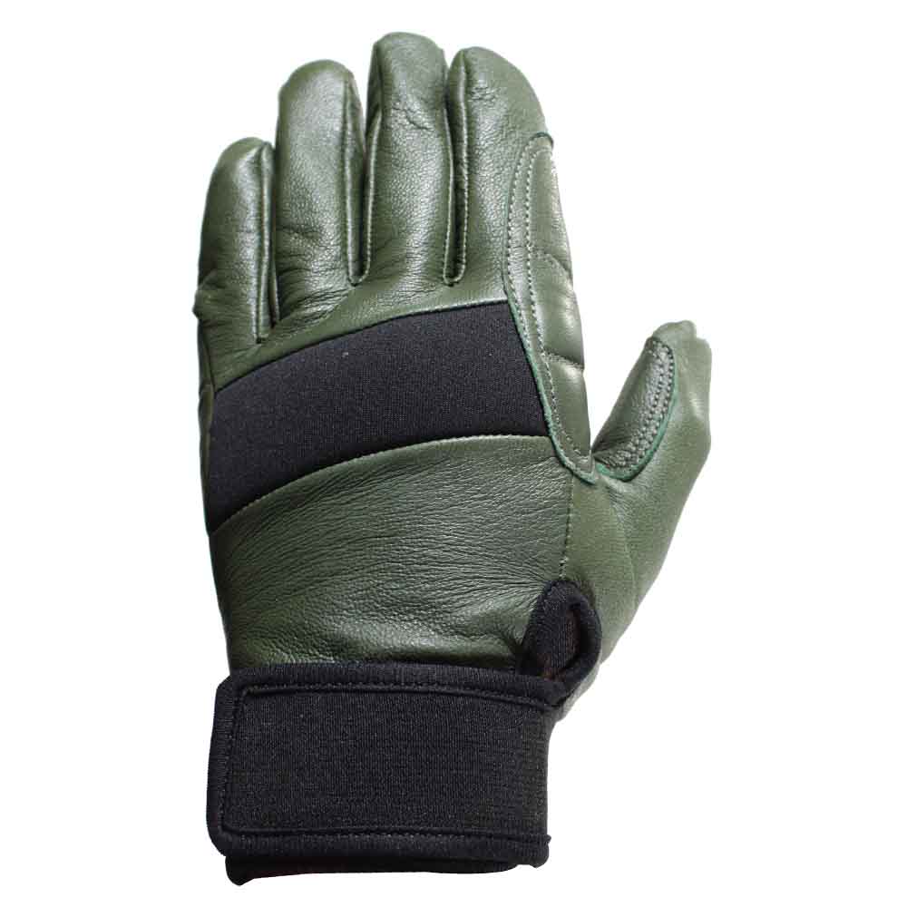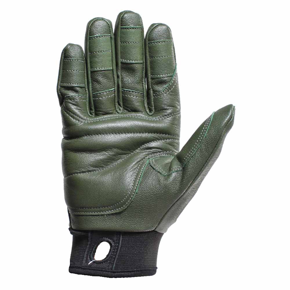 Guantes de Cuero color Verde. Guantes resistentes construidos con cuero de alta calidad que ofrecen un ajuste preciso. Muy útiles para asegurar y rapelar.