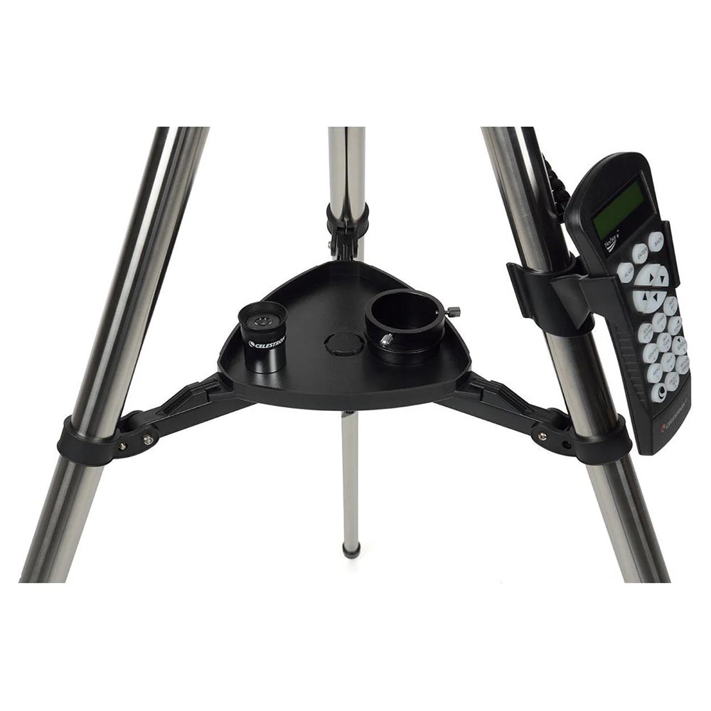 - Montura altazimutal computarizada: el telescopio NexStar SLT cuenta con una montura altazimutal de un solo brazo de horquilla, que permite al telescopio seguir los objetos deseados a medida que parecen moverse por el cielo nocturno. La montura se asienta sobre un trípode de acero ajustable y preensamblado.